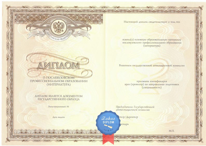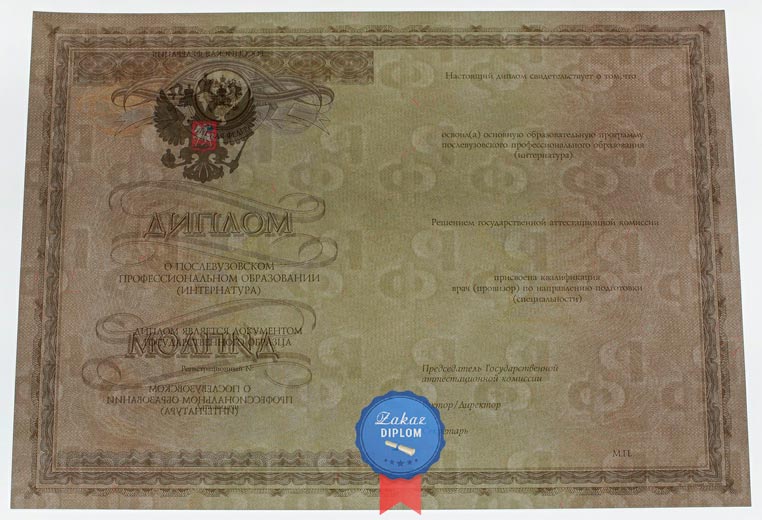 Купить удостоверение о прохождении ординатуры или интернатуры
